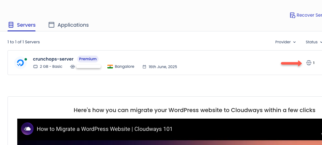If you have multiple servers, they will appear in a list, choose the one you want to manage.