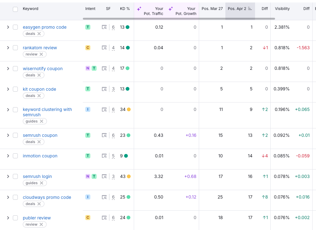 Pro Tip: Focus on keywords with low KD and moderate volume for faster wins.
