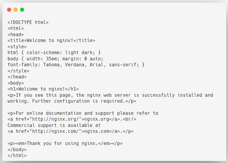 If you curl the Nginx Pod with default configuration, you will get this same output.
