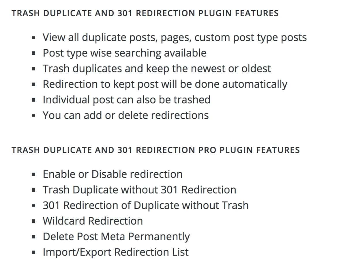 1. The best feature of this plugin is that once deleted it will create a 301 redirect for the deleted post. This redirection will help if the duplicated post is indexed or linked to any other websites.