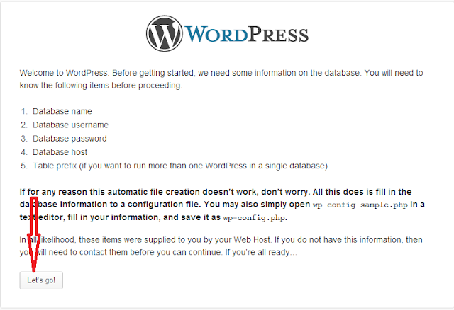 sudo rm -f index.html13. Now enter the public DNS followed by /wordpress in the browser. There you can see the WordPress file. Click it and then click "create a configuration file". If you want your WordPress directly accessible by the public DNS, then you have to copy the files inside WordPress folder to WWW folder.