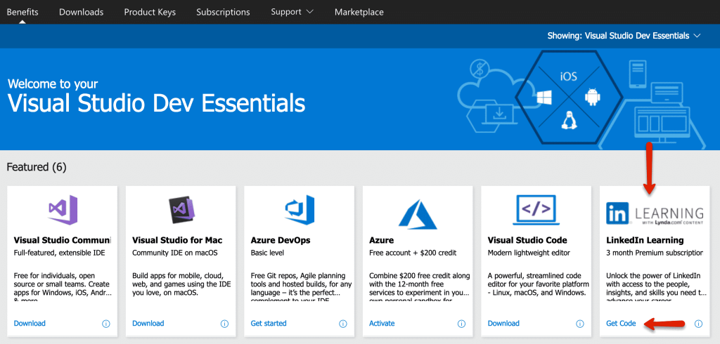 Step 2: Once you have verified the Visual Studio account, you will be taken to the default benefits page. There, you can find an offer to get three months of free subscriptions to LinkedIn Learning, as shown in the image below.