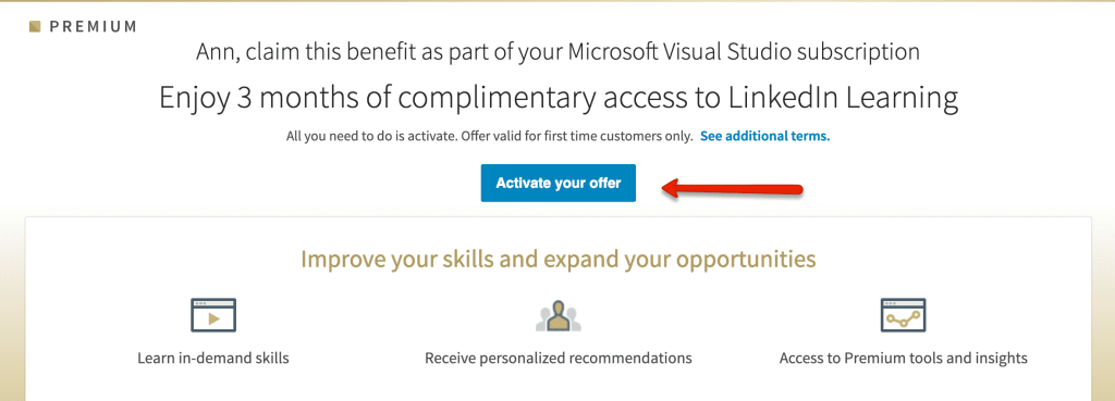 Step 3: Click "Get Code" to get the "Activate" button. Once you click activate, it will take you to the LinkedIn learning free three-month subscription page, as shown below.