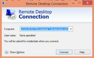 Step 5: Start the Windows remote desktop client enter the public DNS or the public IP of your server instance and hit connect.