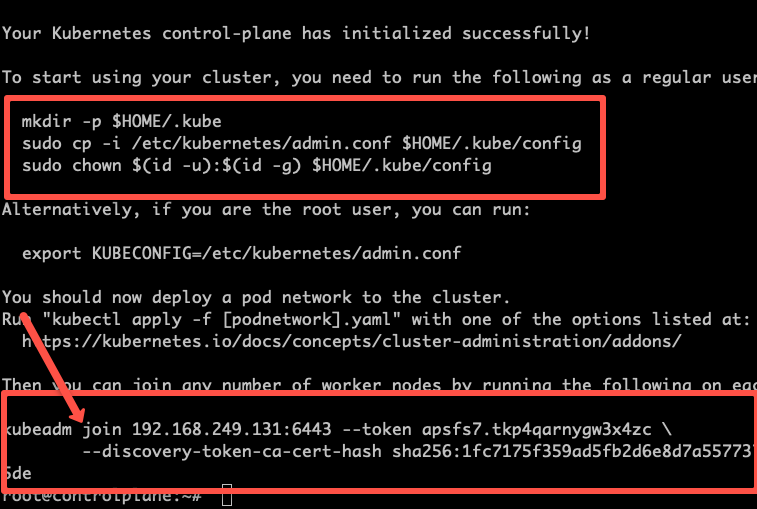 kubeadm join 192.168.249.131:6443 --token ro4vsa.bt6u81o18y2iibc7 --discovery-token-ca-cert-hash sha256:1fc7175f359ad5fb2d6e8d7a55773767e7958d939511ce36f19a9ba5c8b975deIf you dont have the command, execute the following command on the control plane node to get the join command.