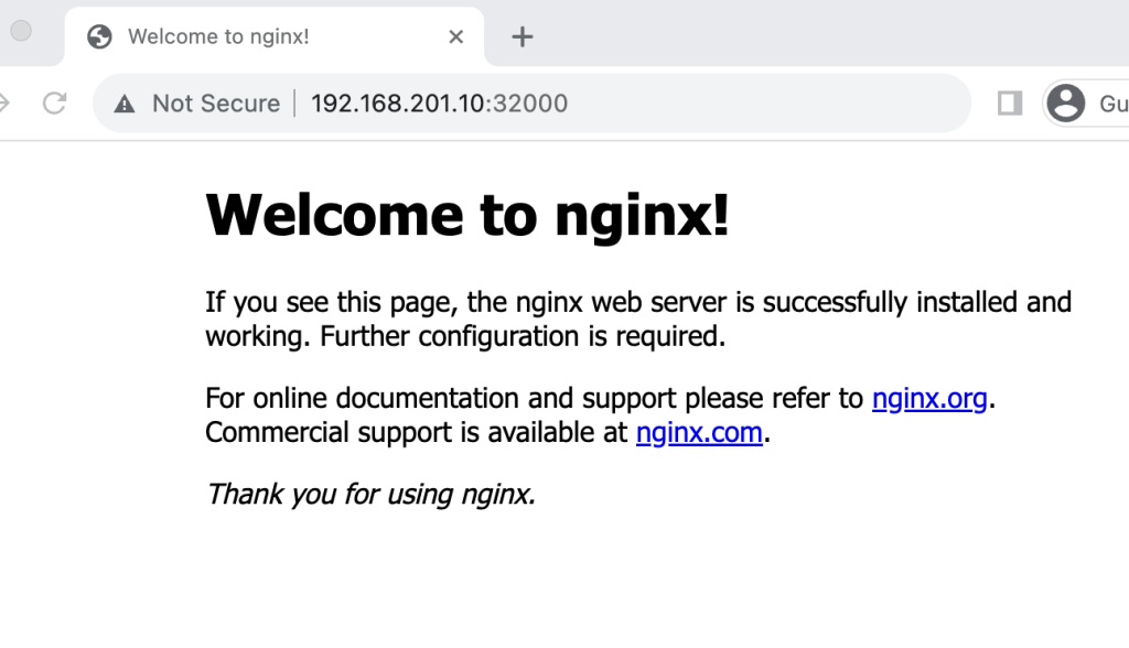 kubectl get svc -o wideYou should be able to get the Nginx homepage on any of the worker Nodes IP with port 32000.