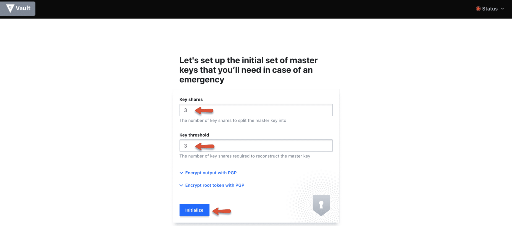 Step 8: Initialise the vault using the initialise button with 3 key shares.