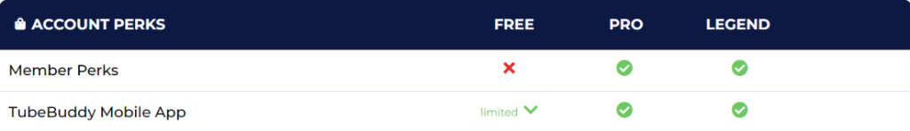 TubeBuddy Account Perks